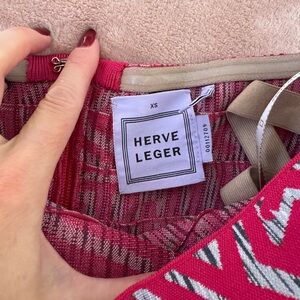 Herve Leger pink and White Geometric Dress