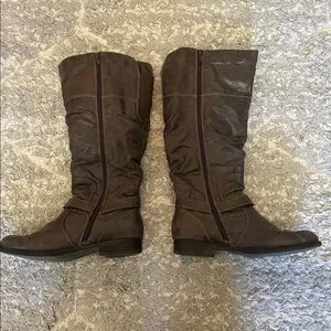Women’s size 9 gray BareTrap knee high boots. Features stylish buckle details and size zipper closure. Very comfortable and stylish! Gently used condition