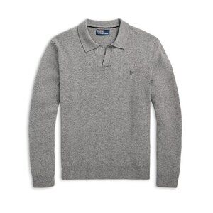 Polo Ralph Lauren Men's Johnny Collar Fine Wool Knit LS Polo Sweater Grey XL