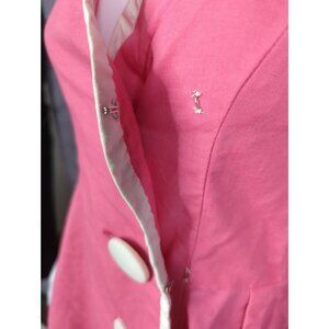 This Vintage 60s dress is perfect for adding a touch of retro charm to your wardrobe. In a delightful pink and white, it comes with 5 buttons and hits above the knee depending on height. Handmade for a personal touch, it fits Small sizes.