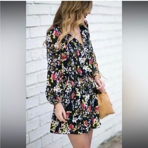 Banana Republic Multi Color Floral Long Sleeve Smocked Waist Dress S