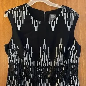 Vince Camuto silver on black subtle sequin sleeveless cocktail dress shift