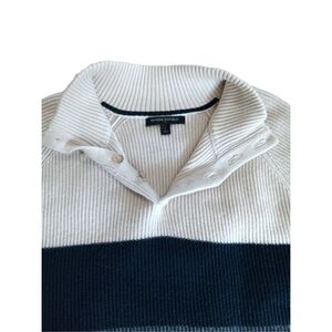 Banana Republic Men's Button Up Sweater - Cream, Navy, Gray Coastal, Preppy
