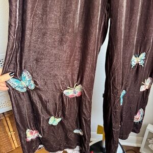 NWT JOHNNY WAS Embroidered Velvet Floral Wide Leg Coordinating Pull-On Pants
