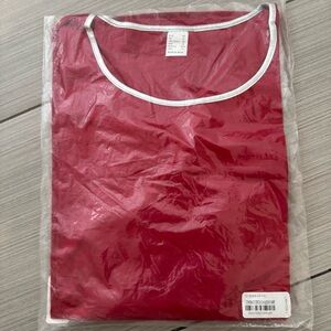 Stylish red white trim women's top. Perfect for casual outings or a relaxed day at home.