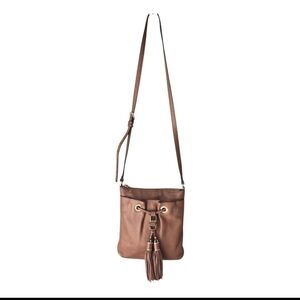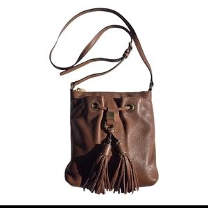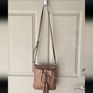 Michael Kors Leather Crossbody Bag Women's Brown Pebble Tassels Logo Small
