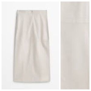 NWT Massimo Dutti Studio Off White Leather Midi Skirt with Front Slit Size M.