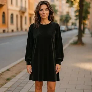 Zara black velvet long sleeve dress perfect for fall/winter dress up with heels and accessories for formal occasions or boots/flats for more casual daytime look. Wear it as a tunic with tight/leggings and/or belt for a different look. Extremely comfortable, flattering and easy to wear. Size 8 in excellent new condition no flaws.