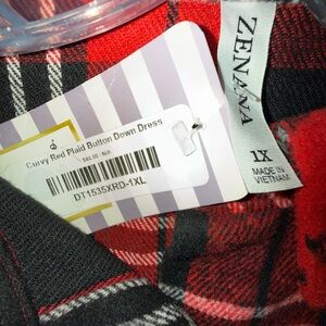 Cozy plaid shirt with button-down front. Features chest pockets and side pockets. Ideal for everyday wear. Depending on height, could be worn as a dress.