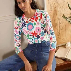 Boden Crew Neck Floral Print Color Sweatshirt Top Pullover size S