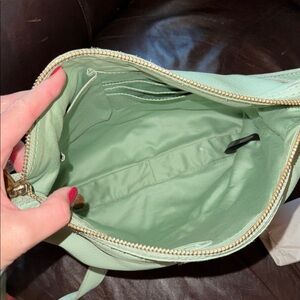 Fossil minty green crossbody . Its sleek design and versatile color make it a must-have accessory. Approx 11inches by 12 inches. Lightly used.