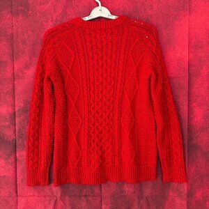 MERONA WOMEN'S PULLOVER SWEATER RED MIXED CABLE KINT CREW NECK SIZE M (MEDIUM )