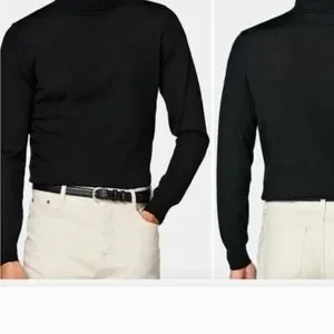 Flawed Suitsupply 100% Merino Wool Classic Black Turtleneck Sweater