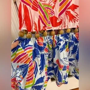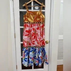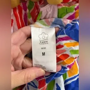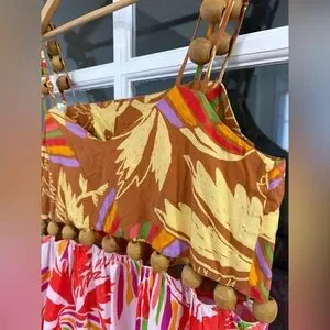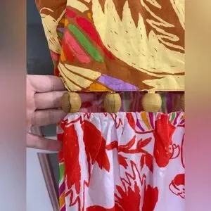 FARM RIO Embellished Cutout Printed Cotton-poplin Midi Dress - Size M - pre owned - excellent condition- unlined - with wood beads details - gorgeous