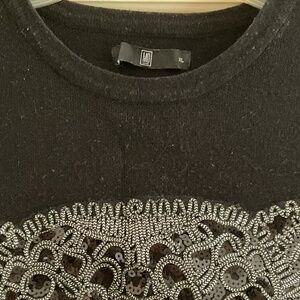 Black Animal Embroidery Front Design Woman Long Sleeve Pullover Size US XL