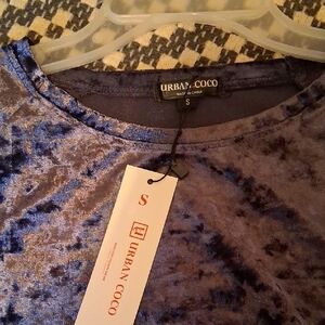 Experience elegance with the Urban Coco Women's Long Sleeve Velvet Top. This royal blue piece adds a touch of luxury to your wardrobe, perfect for any occasion.