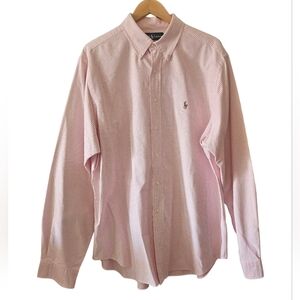 Ralph Lauren Mens Thick Pink Pinstripe Classic Fit Pony Logo Shirt 17.5 36/37