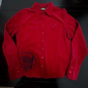 Harley-Davidson Women’s L Red Corduroy Button-Up Shirt Embroidered Lion Crest