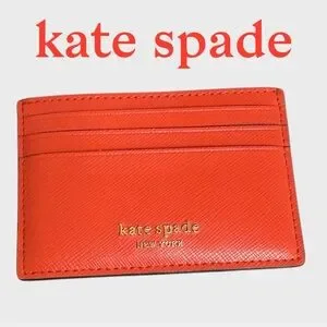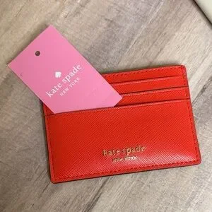"Gazpacho" color - Vibrant orange card holder by Kate Spade. Features multiple slots. Elegant and practical. 7 Card Slots - 1 center; 3 front; 3 back