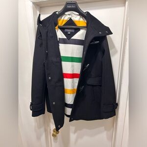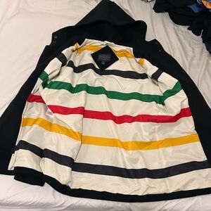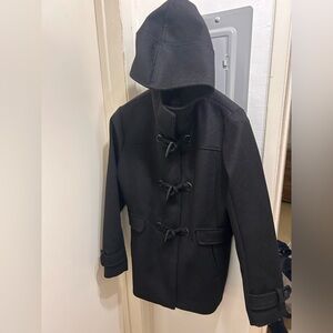 Pendleton Pea Coat Womens Large Black Wool Blend Hooded Rosyln Toggle Duffle