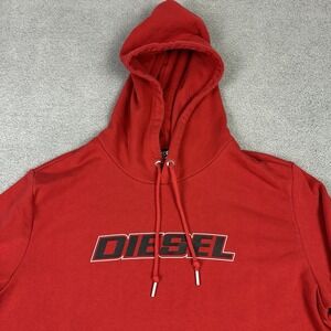 Diesel Hoodie Mens XXL 2XL Red Pullover Graphic Logo Only The Brave Sweatshirt