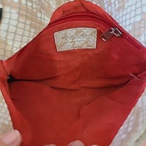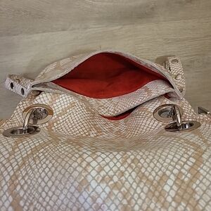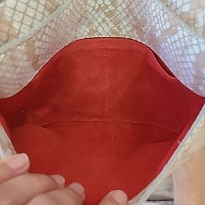 this beautiful snakeskin crossbody unique bag is made if high quality material perfect condition clean inside out. would be a great addition to spring summer wardrobe. hight 9 width 10 depth about 3
