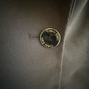Sophisticated dark blue blazer by Calvin Klein. Ideal for both office and casual.