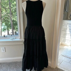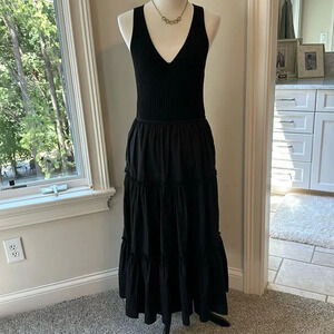 Evereve Arya Rib Knit V-neck Tank w/flowy, ruffle tier dress, Medium, Like new