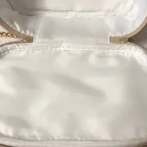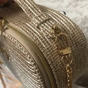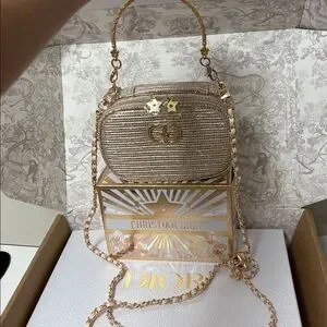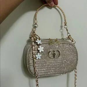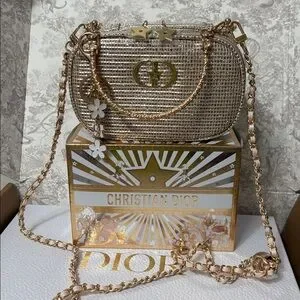 I attached non branded gold metal adjustable bag strap to make the Gold Dior Pouch into handbag/ crossbody bag
