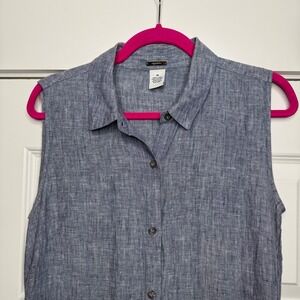 Magaschoni Blue Chambray Linen Button-Up Midi Shirt Dress Sleeveless Sz Medium