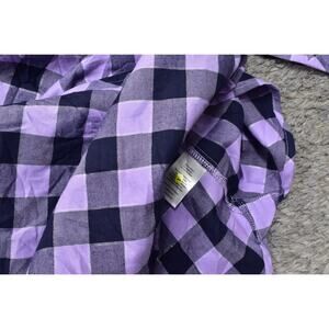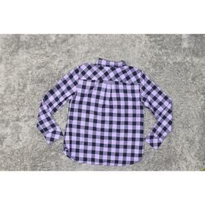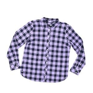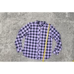 Talbots Petite PS Purple Plaid Button-Up Cotton Blend Top Long Sleeve