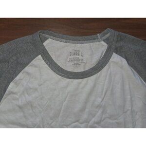 True Classic 3/4 Sleeve Two tone Crew Neck Shirt White & Gray Men Size XL NEW