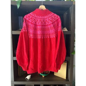 Crown & Ivy Red & Pink Fair Isle Sweater Size XL