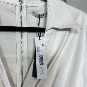Alice and Olivia Mila Faux Leather Twist Front Cap Sleeve Dress