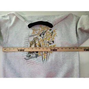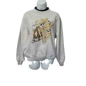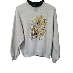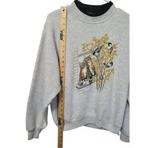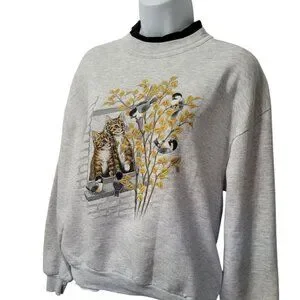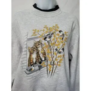 Vtg 90s Kitty Cat Double Crewneck Sweatshirt Medium Grandma Core Cats Birds USA