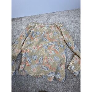 Eddie Bauer Large petite Tunic Blouse Floral Paisley Brown Boho
