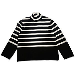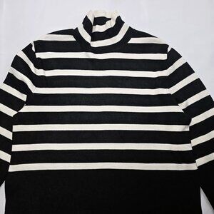 H&M Women’s Striped Turtleneck Sweater Black Ivory Fine Knit Size M
