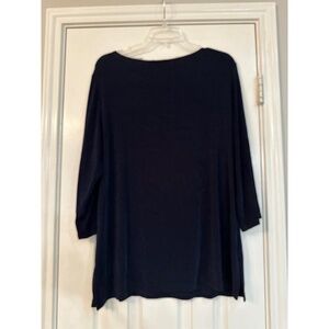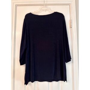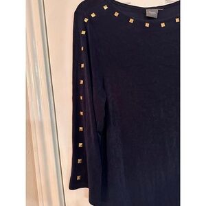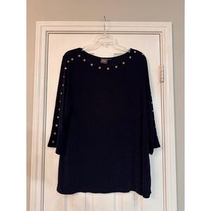Chicos Top Womens Navy Blue Studded Knit 3/4 Sleeve Gold Studs Edgy Chic