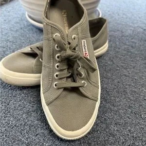 Stylish olive sneakers by Superga. Ideal for everyday wear. Durable canvas material.