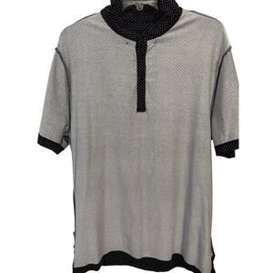 Vintage Claiborne XL Polka Dot Polo shirt 3 button front and hem slits.