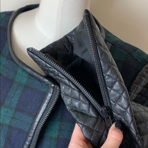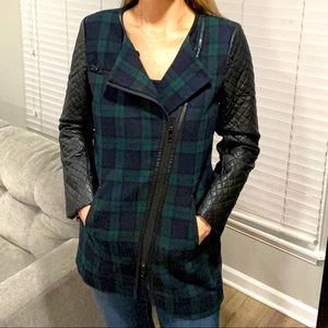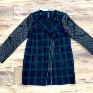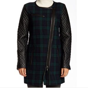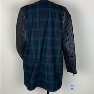 NWT WALTER BAKER 118 Sadie Blue Green Plaid Faux Leather Sleeve Coat MED