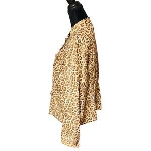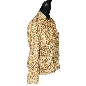 Chicos Leopard Print Jacket Size 2 (Large 12)Jacket Metallic Gold Buttons