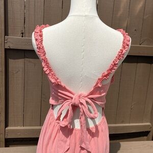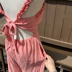 Ruffle Shoulder Bow Tie Back Jumpsuit in pink