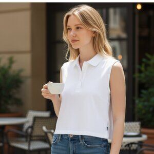 NWT ZARA CROPPED POLO WHITE MEDIUM Rugby Preppy Academia