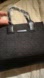 mini tote bag shaped from a diamond-print denim with faux leather trim.