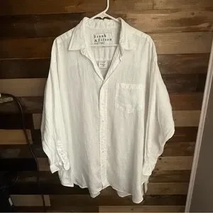 Frank & Eileen Women’s OS Mackenzie Italian Linen Button Up Top White Relaxed