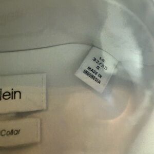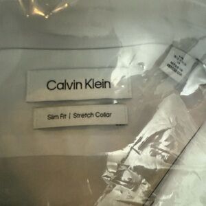 Brand new Refined and stylish, this Calvin Klein dress shirt is ideal for formal events. Features a classic design with a sharp collar. Size small 14 32/33