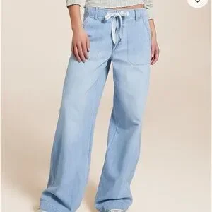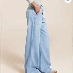 Elevate your casual style with these light blue wide-leg jeans. Perfect for a relaxed yet chic look. EUC. 28 waist, 29 inseam. Perfect for petites.