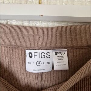 Figs Women's Tan Ribbed Knit Wide Leg Lounge Wear Pants. Side pockets Soft material made of Viscose Polyester and nylon Elastic waist with a drawstring. • Ribbed knit Wide leg pants Smoke free, pet free home.