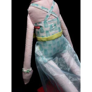 Doll is in good pre-owned condition. There are a couple of dark marks on the back of one leg and some really light ones on the arms and legs. Doll stand not included. Please see photos.